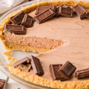 No baking and just three simple ingredients to make one of my all-time FAVORITE pies! This super creamy chocolate Hershey Pie is so simple to make and a recipe you will love.