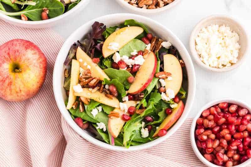 This Thanksgiving Salad brings something light and crisp to balance out all the cozy casseroles. It’s easy to throw together and looks beautiful on the table.