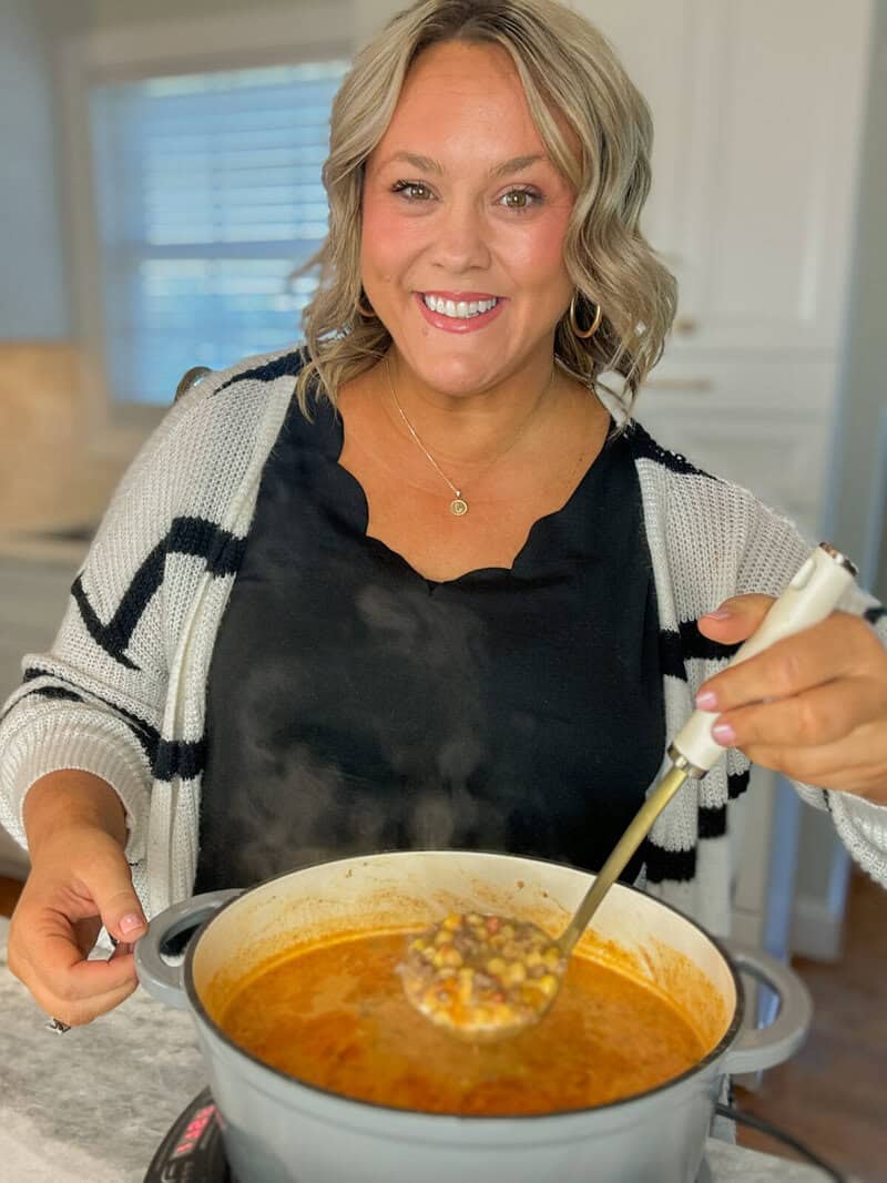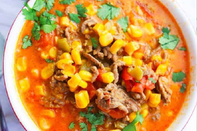 If you love nachos then this soup is the perfect recipe for cozy season! Loaded with beef, cheese, corn, and tomatoes (we skip the beans but you can add them in) I think this one is going to be one you love.