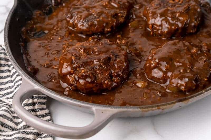 A classic, hearty dinner that feels comforting and filling midweek. It’s one of those nostalgic meals that always hits the spot and pairs perfectly with simple sides. It’s perfect paired with mashed potatoes.