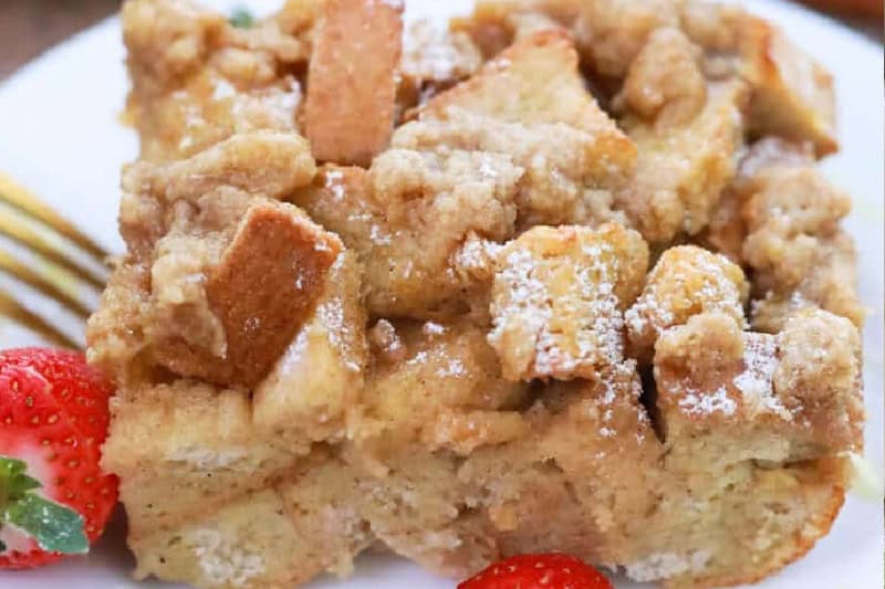 We love breakfast for dinner on the weekend. Soft, custardy bread bakes into a warm, sweet casserole with a golden top. Serve it with syrup, powdered sugar, or fresh fruit for a relaxed start to the day. I like to make some scrambled eggs or sausage to go with it.