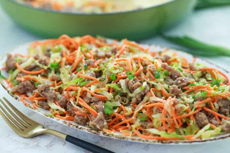 A lighter, low-carb spin on takeout egg rolls, this Egg Roll in a Bowl is made with ground pork (or chicken) and stir-fried cabbage with plenty of flavor-packed seasonings. It comes together quickly in one skillet and tastes just like your favorite takeout—but without the wrapper. It’s an easy, healthier dinner you’ll want on repeat.