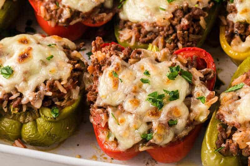 These Stuffed Peppers are a classic comfort food made with a hearty filling of rice, ground beef, and flavorful seasonings, all baked inside sweet bell peppers. You can even prep them ahead of time for an easy weeknight win.